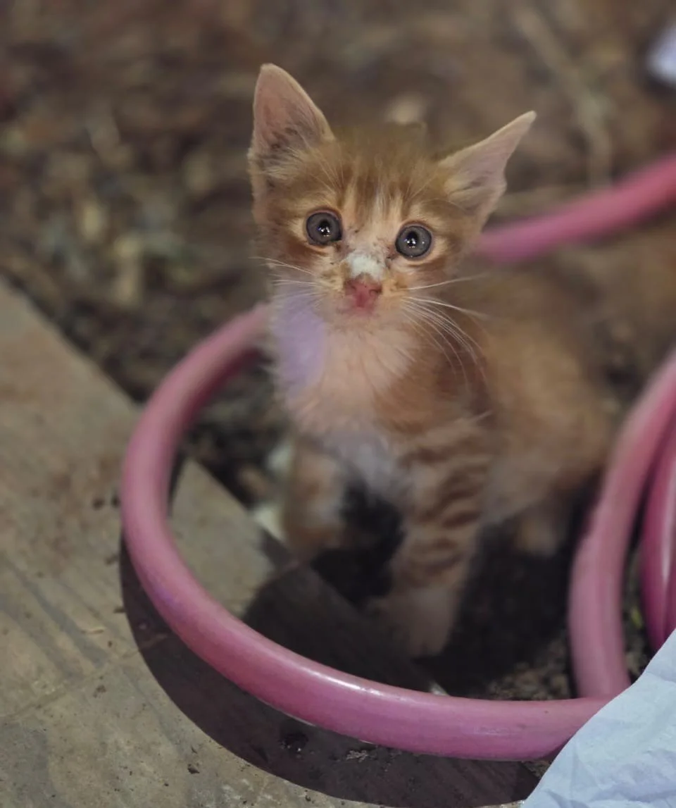 When we found her on the street, she weighed just over one pound—abandoned, fragile, unnamed, and barely holding on. She was suffering from coryza, a severe and highly contagious viral illness that attacks the nose, eyes, and lungs. For kittens this small, it can quickly become deadly.